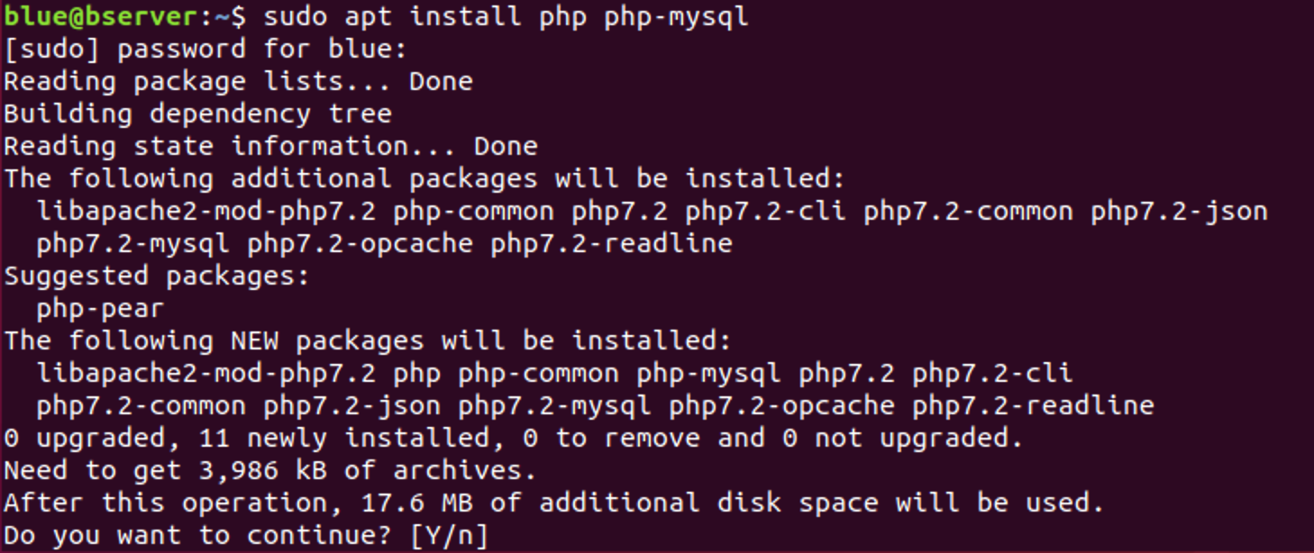 비밀번호를 입력하시고 Do you want to continue? 에는 Y 를 눌러 진행합니다.