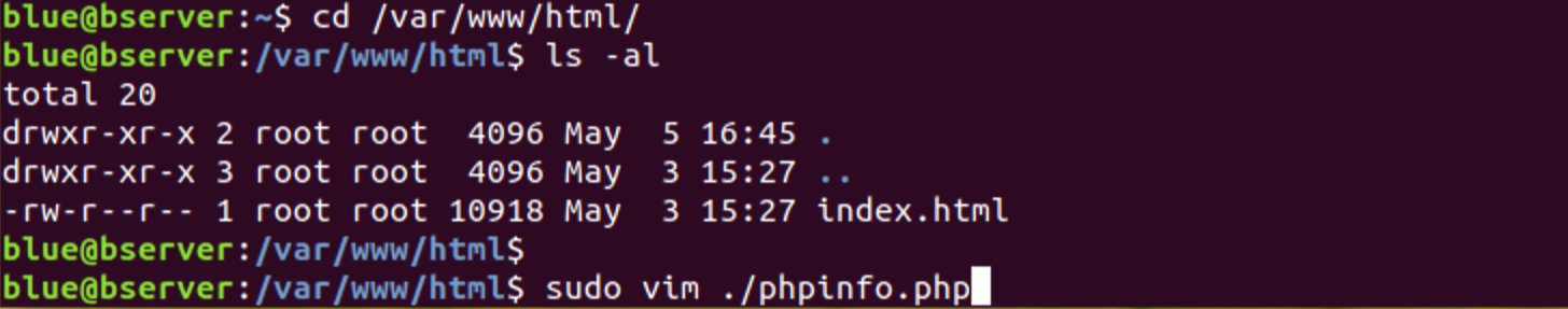 설치가 다 됐다면, aphache2 의 기본 디렉토리(/var/www/html/)로 이동합니다.