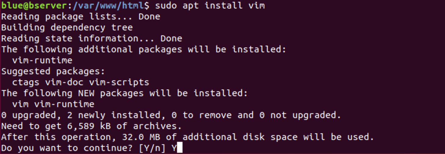 저는 vim 에디터를 주로 사용하기 때문에, sudo apt install vim 을 입력해서 vim 에디터를 설치했습니다.